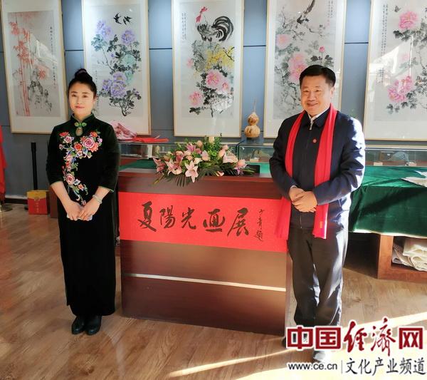 李少青(右)题字后与夏阳光(左)合影 经济日报-中国经济网记者李冬阳/摄