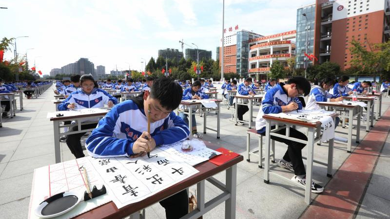 周口这个高中举办“书画大赛” 千名学生挥毫泼墨抒发爱国之情
