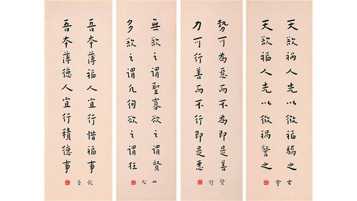 郑岱《奕棋图》弘一行书《格言联璧》四屏此次展览由十竹斋组织,在泉州源和1916创意产业园门里博物馆展出,不仅有周天球书法作品《行书七言诗》值得一提的是,弘一法师的书法以圆净清劲的线条、不激不励的行笔、拙稚质朴的结体、疏朗严谨的布局,赢得艺术界的广泛青睐。