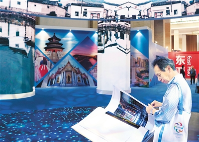 观众在亚洲文化旅游展上观看世界遗产影像展示画册。新华社记者 金良快 摄