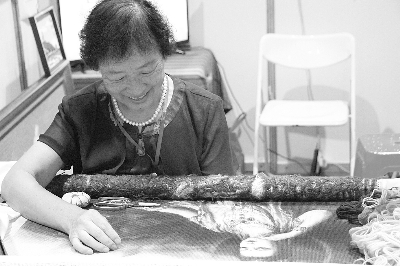 山东省工艺美术大师唐淑娟示范绒绣技法。本报记者 赵若姝 /图
