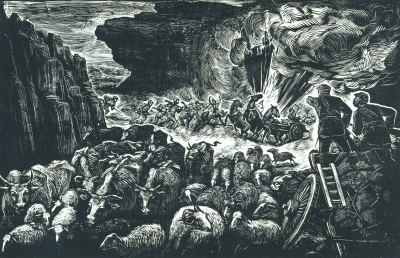 夺回我们的牛羊(版画) 11.6×8.5厘米 1945年 沃渣 中国美术馆藏