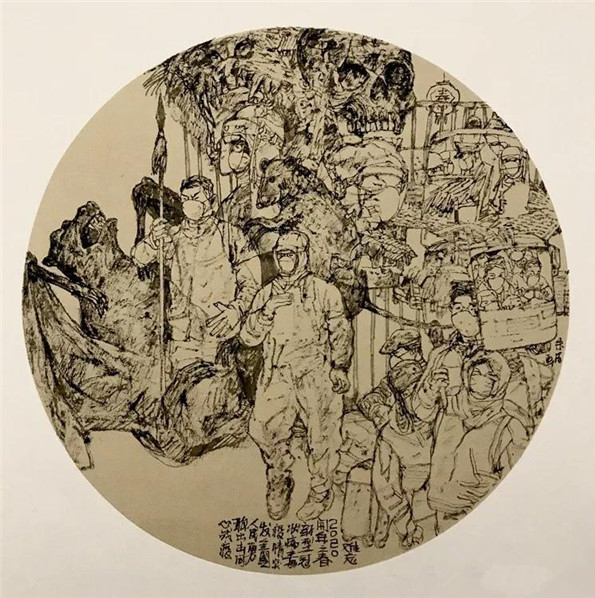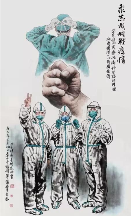 《众志成城战疫情》 王书平 张礼军 张福有 中国画