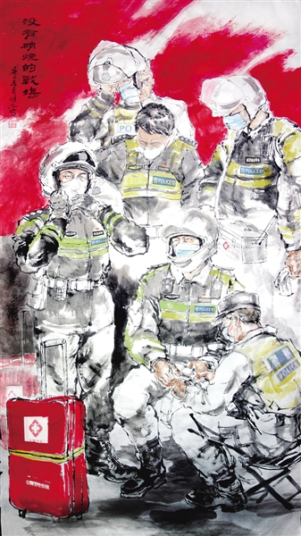 防疫一线(中国画) 陈筱青