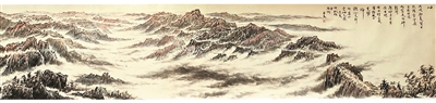 其中,“千里江山——历代青绿山水画特展”展览以北宋王希孟的《千里江山图》为中心,系统梳理、展示中国历代青绿山水画的发展脉络。作为北宋时期的一幅青绿山水孤品,《千里江山图》全幅构图景象开阔,取用传统的散点透视法,以略带俯视的角度横向展开了全景式的大山大水,气势宏大。