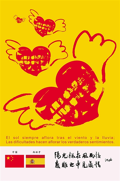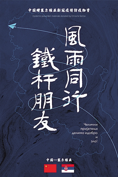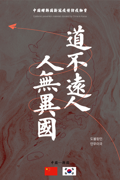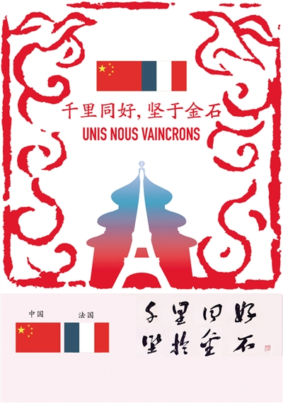 3月18日,中国向法国提供的医疗物资援助运抵巴黎,物资外包装上的图案引人瞩目,那是一枚由中国篆刻艺术家骆芃芃专门设计的红色印章,上面书写着中国传统经典语句——“千里同好,坚于金石”,展示了我国对外工作的文化品位和国家形象。此次,上海大学上海美术学院的师生,用美术设计的语言,将援助物资上过目不忘的寄语,转化成艺术画面。孙晓云、陈洪武、卢中南、管峻、沈浩几位书法家挥毫泼墨,书写下这些各国人民携手战疫中凝练下来的珍贵语句。在这些精心设计的海报和饱含深情的书写中,让我们共同期待,世界人民携手战胜疫情的那一天快快到来。(于园媛)