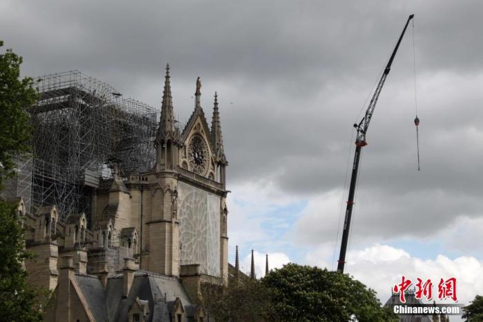 资料图:当地时间2019年4月27日,巴黎圣母院应急保护工作加紧进行。中新社记者 李洋 摄