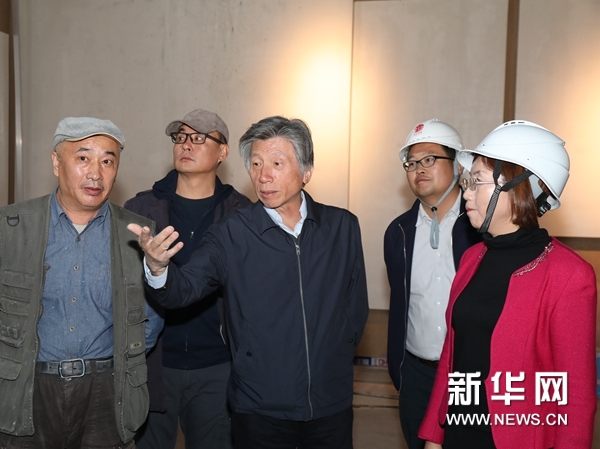 范迪安(中)与白晓刚(左二)在纪念馆工地考察