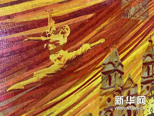 画面从左到右分为三个段落,分别描绘以黄帝陵、轩辕像为代表的历史文化,以鲁艺为代表的革命文艺创作成果,以日出东方和雄伟长城象征延安文艺精神的传承发展。画面以桔红、金黄为主调,表现延安文艺的光辉和黄土高原的地域色感。在造型风格上吸收了陕北画像石刻、民间剪纸和延安木刻版画的形式语言,力求体现雄强素朴的艺术格调。壁画运用彩色玻璃马赛克艺术镶嵌技法,使作品具有明亮的色泽。
