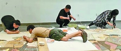 本次创作我带领的是相对年轻的团队,六位创作成员来自全国各地,除了北京语言大学的齐鸣教授,李朋帮、李玉旺、李丹、管海龙都是工笔画院首届高研班的优秀学员,他们有的是职业画家,有的是美术学院教师,有的是正在考博的研究生。但大多数人是第一次参与主题性创作,这两年来主动克服家庭、工作的各种不便,倾心投入到这幅主题性创作中。通过此次创作工程的积累和锻炼,每位参与的画家内心深处和绘画上都有很大的收获和提升,李朋帮、李丹、管海龙等创作组成员作品全部入选第十三届全国美展。其中李玉旺还荣获了第十三届全国美展金奖。