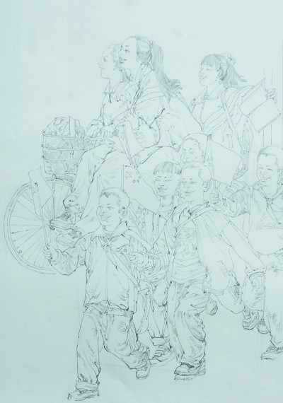 创作中最难处理的还是写实作品里的绘画性问题,写实性绘画特别容易陷入刻板、僵死、摆拍等状态。这幅作品题材是现实的,内容是具象的,在画面构成相对稳定的状态下,怎样能够跳出这种局限性,摆脱像照相机模式的照搬照抄,在尊重事实的前提下去追求作品的绘画性,这是个难点。对现实性素材的主观化处理,从画面的疏密组织上、人物形象上、画面色彩上都需要进行主观性的处理。
