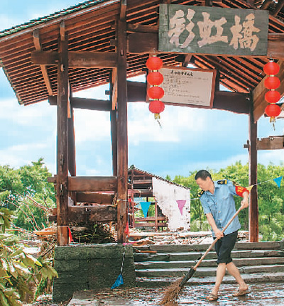 2010年,当地文物部门曾对彩虹桥进行全面维修。景区工作人员平时也会对桥体进行日常检查和养护。2017年夏季,婺源遭遇强降雨,洪水淹过桥面20厘米,彩虹桥安然无恙。今年汛期来临后,婺源县文物局对彩虹桥进行安全隐患排查,未发现明显问题。“彩虹桥桥墩本就符合流体力学原理,不适合进行钢管加固。”詹建春介绍,“接到气象局发布的暴雨预警后,我们立即启动应急预案。7月7日关闭景区,在两端桥头设置警戒线,并派专人24小时值守,密切关注水位和桥体安全状况。”