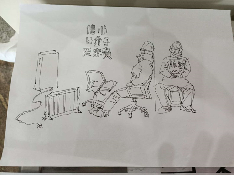 周先生被确诊为新冠肺炎轻症患者入住江汉方舱医院,住院以来,他以医院生活和医护人员的工作状态为背景创作了多幅画作。