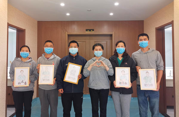 同心赢战疫,书画传真情。3月31日下午,在郑州市委党校3号楼四楼走廊上,5名河南援鄂队员各拿一幅彩铅手绘画赞不绝口:“画得真像,眼神最有神!”