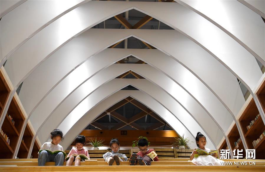 8月4日,小朋友在合肥长江180艺术街区拾光书屋里阅读。新华社发(解琛 摄)