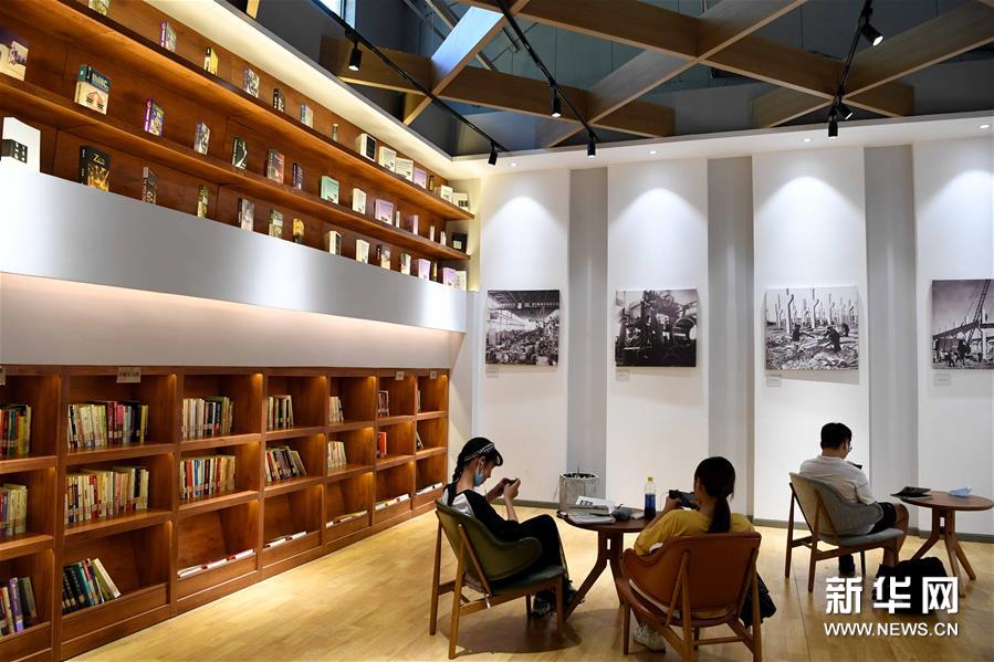 8月4日,在合肥长江180艺术街区,人们在由老厂房打造的拾光书屋里休闲。新华社发(解琛 摄)