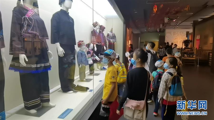 学生在广西民族博物馆观赏民族服饰(8月5日摄)。 新华社记者 黄庆刚 摄