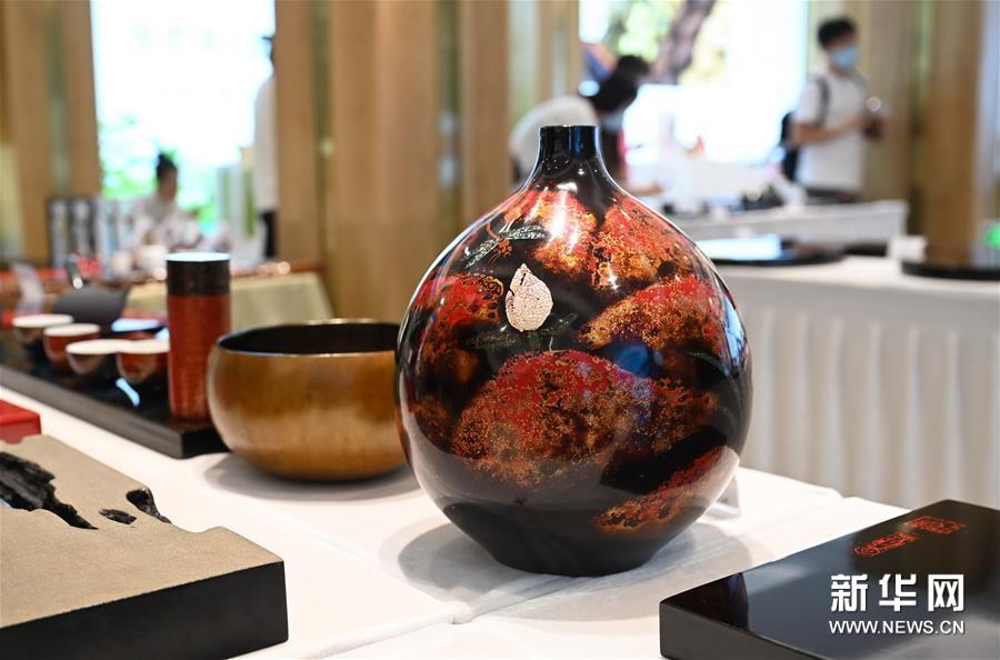 这是现场展出的漆器作品《荷塘小趣》(8月15日摄)。新华社记者林善传摄