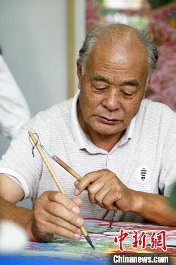青州市农民画非遗传承人马季青正在绘制画作。 沙见龙 摄