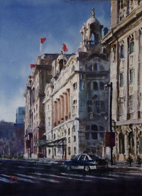陈希旦《外滩晨光》水彩