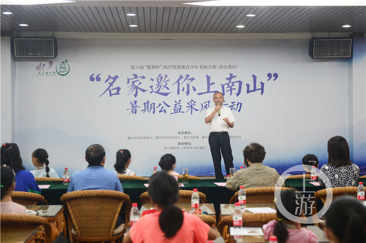 8月15日,第六届“紫荆杯”两岸暨港澳青少年书画大赛(重庆赛区)“名家邀你上南山”暑期公益采风第二场活动在南山植物园再次登场。鲁迅文学奖获得者、当代著名女诗人傅天琳,与30名第六届“紫荆杯”重庆赛区参赛选手、25名南山植物园小小讲解员一起读诗、品字、赏画,感受中国传统文化的魅力。