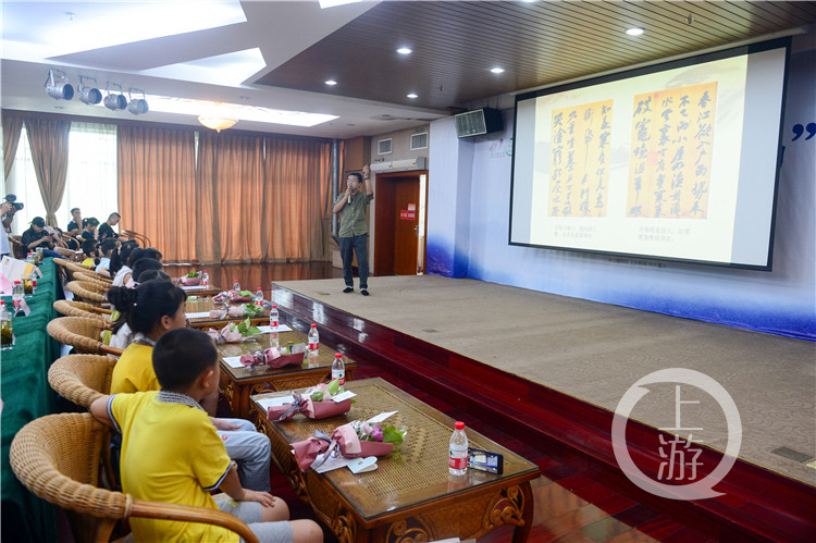 “苏东坡的《寒食帖》为什么有些行距近有些远?为什么有的字大有的字小?书法应该如何品鉴?”随后,陈代伟老师教孩子们学习书法的气韵之美。陈代伟告诉孩子们,赏析书法要结合作者当时的心境以及历史背景。同时,从字体大小的变化、笔锋的变化等感知作者心情。“书法中的气息、气势、韵味、韵致十分重要,我们要透过字,看到书法的气韵。”