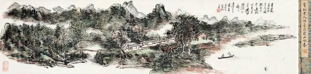 黄宾虹创作于1947年《拟董北苑山水》,以1725万元高价成交。此幅《仿董源山水》手卷,黄宾虹自署“八十四叟宾虹”,时为1947年。当时的黄宾虹虽南归念切,但仍居北平。黄宾虹自1937年由上海迁居北平,在北平的十一年间,他完成了向“黑宾虹”的转变,黑、密、厚、重的基本特点确立。