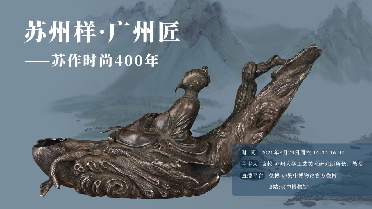 【吴中博物馆将举办“苏作时尚400年”讲座】8月29日14:00—16:00,吴中博物馆将举办“苏州样·广州匠——苏作时尚400年”主题讲座。讲座由苏州大学工艺美术研究所所长、教授袁牧主讲,他将从浩瀚的文史资料中,条分缕析地梳理出苏作时尚所产生的线索,并以“苏州样”为切入口,分析其所演化出来的“苏意”、“苏式”和“苏作”的意涵。观众可通过官方提供的二维码进行讲座报名。