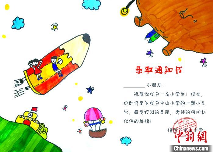 福州市中山小学师生们为一年级新生准备的绘本《我“绘”爱上学》录取通知书。福州市中山小学供图