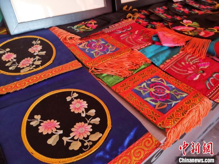 图为兴安盟图什业图民间刺绣传承人正月的绣品展示。 乌娅娜 摄