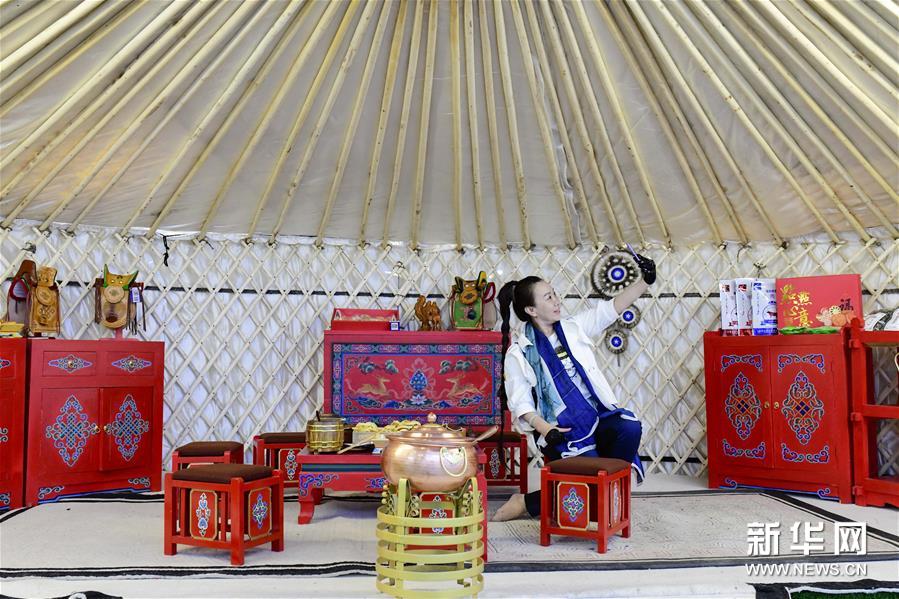 9月6日,观众在传统工艺展厅器具区拍照留念。 新华社发(王正 摄)