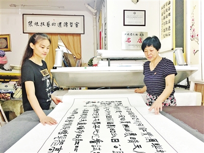 日前,记者来到市人民公园东门附近的一家书画作品装裱店。负责人王志刚正拿着画框准备装裱作品。他告诉记者:“店已经经营快20年了,装裱各类书法、绘画作品等。最近还要装裱百余幅书法作品。这些年,随着咱们我市书法产业越来越红火,我小店的生意也是越来越好。”
