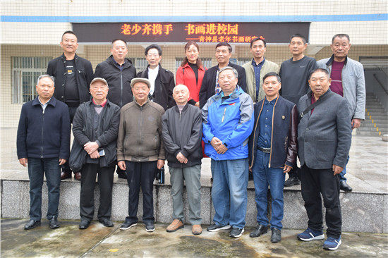 四川新闻网消息(陈兴 文/图)10月13日,青神县老年书画研究会在汉阳学校开展“书画艺术进校园”活动,在杨文汉会长的带领下,十多位艺术老师为孩子们送来了一份珍贵的礼物——前辈们精心创作的书画艺术作品。