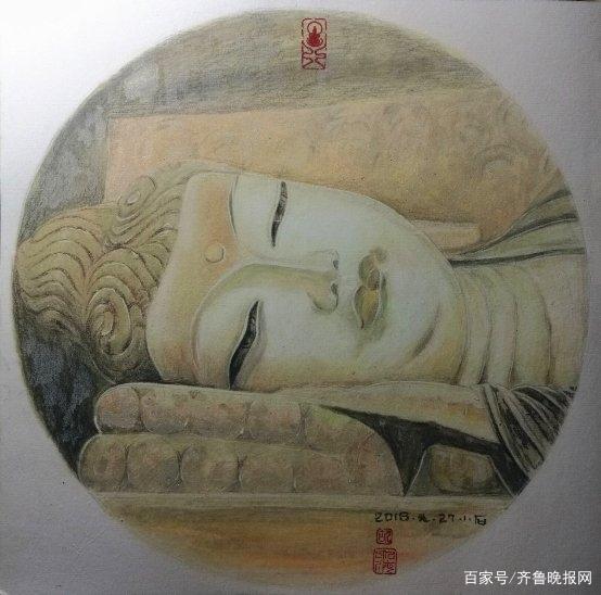 国之宝藏珍品馆艺术院副院长,首都博物馆书画院执行秘书长胡春海参展作品《睡佛》
