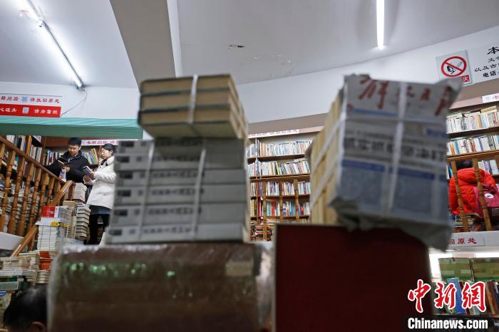 12月24日,民众在复旦旧书店里寻找书籍。近日,上海复旦大学周边的一家旧书店正面临关门困境。复旦旧书店店主张强表示,由于租赁合同于2020年12月31日到期。如果在明年初的缓冲期里,合约不再续签,旧书店就将正式关门谢客。