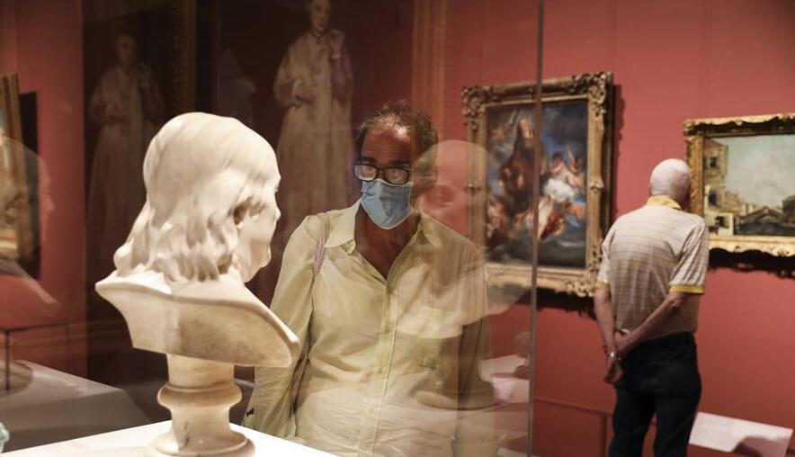 8月27日,人们在美国纽约大都会艺术博物馆第五大道主馆参观。当日,受新冠疫情影响关闭5个多月的纽约大都会艺术博物馆第五大道主馆对会员重新开放8月27日,在美国纽约大都会艺术博物馆第五大道主馆外,工作人员为参观者测量体温。当日,受新冠疫情影响关闭5个多月的纽约大都会艺术博物馆第五大道主馆对会员重新开放