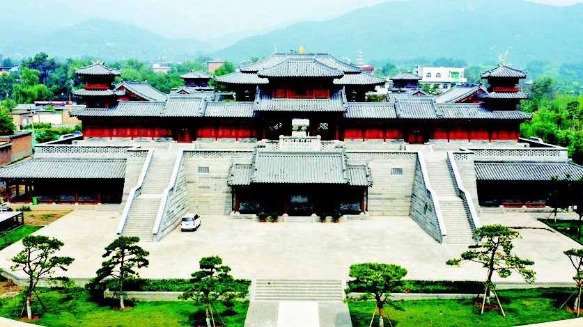 7月27日,鸟瞰晋文公祠,仿汉代高台式祠庙建筑,宏伟大气,展现汉风古韵的文化风貌。