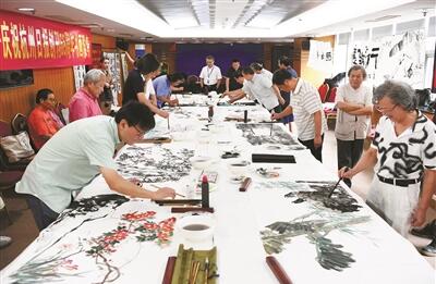 7月24日,一场书画雅集在杭州日报社举办,二十余位来自杭城内外的著名书画家挥毫泼墨,庆祝《杭州日报》走过辉煌灿烂的65周年。1955年11月1日,飘着油墨清香的第一张中共杭州市委机关党报——《杭州日报》和读者见面。65年风雨兼程