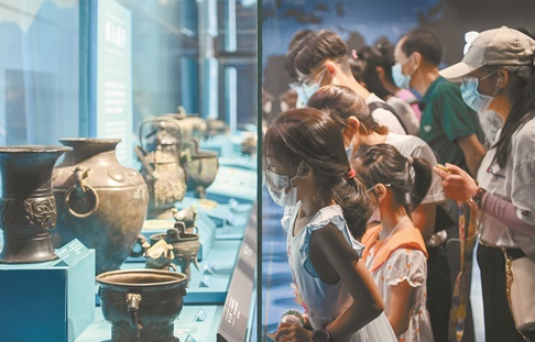 7月22日,湖南省博物馆,不少小朋友在参观。进入暑假,许多家长带着孩子到博物馆参观,让孩子们学习了解中国传统文化,丰富假期生活。目前,湖南省博物馆采取个人网络实名制预约参观,每天限额2000人。
