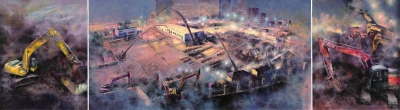 翁凯旋,刘影(合作) 《决战前夜——记火神山医院建设》 三联画 布面油彩。资料图片