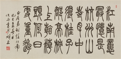 李伏雨书法行草具“二王”风韵,挥洒间真情流露,自然酣畅;隶书见汉碑骨力,舒展凝练;楷书得颜真卿精髓,煌煌庄严而不失亲和力;尤精小篆,上承“二李”遗绪,下究清篆三昧,自出胸臆。