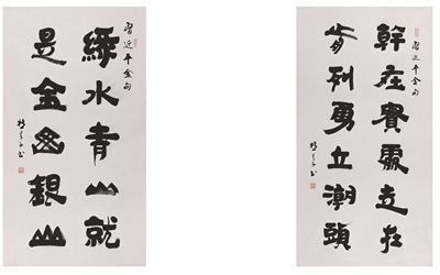 与书法相伴的六十多年里,无论是工作之余还是退休后的时间,樵夫始终坚持习字,并渐渐形成了与其本性相契的独特风格。在他看来,书法创作在追求美感、给人们以愉悦的同时,还应做到不刻意、不率性、不油滑。“书法之美,蕴含在作品的法度与布局,通常体现于章法、笔法、墨法、心法等。”从简碑到宣纸创作的书法转换,可以看出樵夫的深厚功力和独特审美。其书法承袭了楚简汉碑的神韵,并融入当代审美,他在结体上亦诸多用心,求新思变。在他的作品中,同一字结体常常极尽多样,变化无穷。