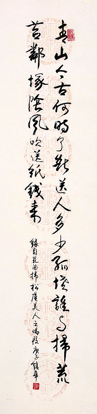 长生殿中弹词七转唱腔,我唱之多年,还是令我在红毯上掀髯悲鸣,时时堕入梦境,于悲歌中晋于高贵。也使我体会到中国书画的独有之境。于是,裁纸研墨,一挥而就,何其畅耶。(庚子端午于武汉慰问演出隙中)