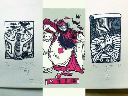很难确切表达这大半年来的沉重感。藏书票和钟馗是跨年期间想到就画的,庚子、鼠年、蝙蝠、福,梅花,这些中国味变了没有呢?一看这些新春元素,对去年就特别怀念,清楚自己虚掷了时间,没认真对待那些好时光,是一直到不能出门才悔悟的。与写作相比,也许画画更灵活,可以抓住忽然出现的景象,画完了可以挂起来经常看看,因此变成经常画画的人了。