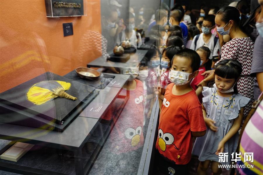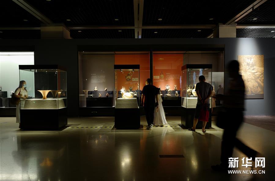 7月4日,游客在观看“失落的黄金国——安第斯文明特展”。新华社 记者 刘潺 摄