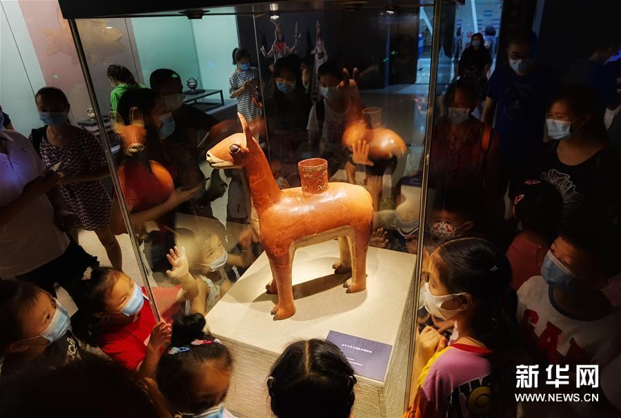 7月4日,游客在观看“失落的黄金国——安第斯文明特展”新华社 记者 刘潺 摄