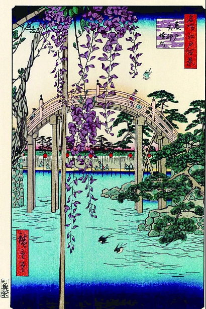 “风景画巨匠”歌川广重,用秀丽的笔触及和谐的色彩,表达出了笼罩于典雅而充满诗意的幽抑气氛中的大自然。