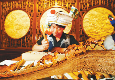 近日,“千年技艺 手工木雕——国家级非物质文化遗产剑川木雕展”在北京园博园开幕,来自云南剑川县的百余件木雕精品与观众见面。