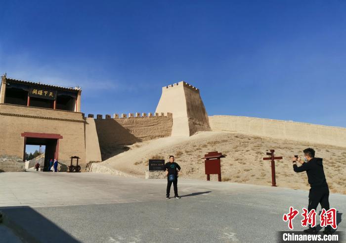 “天下雄关”甘肃嘉峪关关城及所辖悬壁长城景区、长城第一墩景区日前开门迎客。图为游客在景区游玩。甘肃嘉峪关市文旅局供图