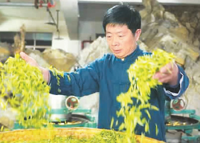 陕西省非遗文化传承人曾朝和现场制作春茶。毛润 摄